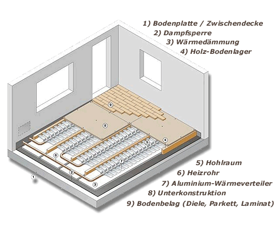 werden seit vielen Jahrzehnten problemlos mit einer Hohlraum-Fußbodenheizung